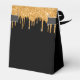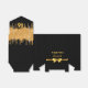 Elégant, classique, glamour et ballotin de style girly. Faux ruban or et arc de couleur or avec fausse parties scintillant d'or goutte à goutte. Arrière - plan noir. Avec le texte : Merci ! Âge : 16 ans. Personnalisez et ajoutez un nom écrit à l'aide d'un script de style à la main moderne.