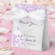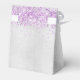 Élégant, classique, glamour et girly pour une Sweet 16, 16e anniversaire de fête favors. Un arrière - plan à l'aspect métallique faux argent avec poussière de parties scintillant violet et une robe. Avec le texte : Sweet 16 et Merci écrit avec un script de style moderne écrit à la main. Personnalisez et ajoutez un nom et une date.