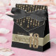 Cet élégant sac Sweet sixteen de faveur comporte une gigantesque parties scintillant "16" en faux or et un ruban sur un arrière - plan à effet satin noir orné d'un motif de bijoux suspendus. Ajoutez le nom d'un célébrant à l'aide du modèle fourni. Recherchez ID260 pour voir d'autres produits avec cette conception.