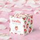 Add a delightful touch to your baby's first birthday party with this charming favor box featuring a whimsical strawberry pattern. The design boasts a scattered arrangement of hand-painted strawberries in vibrant reds and greens, set against a pale pink background. This sweet and cheerful design is perfect for a 'Berry Sweet' or garden-themed celebration, ensuring your guests leave with a smile and a delightful keepsake of the special day.