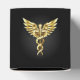 Symboles Caduceus polygonaux or sur arrière - plan noir isolé. Basse poly symbole de la médecine.
