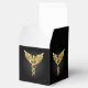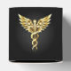 Symboles Caduceus polygonaux or sur arrière - plan noir isolé. Basse poly symbole de la médecine.