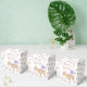 Ce T-Rex vous remercie anniversaire dinosaure ballotin de fête d'anniversaire est prêt à être customisé par vous. Placé sur un motif arrière - plan de pistes de dinosaures brunes, l'entrée carré a trois modèles texte à personnaliser. Le script violet pour ajouter le nom de votre enfant, la police peachy tan audacieuse pour ajouter l'âge de dino de votre enfant et en bas la police moderne brun foncé est d'ajouter un message de remerciement à vos invités pour avoir piétiné pour célébrer. Les ballotins de dinosaures personnalisés sont une façon amusante de préparer des gâteries sucrées pour vos invités et ces boîtes neutres de genre en brun, bronzé, pêche, bleu et violet sont parfaits pour les garçons et les filles.