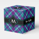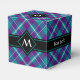 Design écossais vert mer, violet et bleu. Motif sans couture. Texte et monogramme personnalisés.