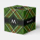 Design écossais vert, noir, rouge et blanc. Motif sans couture. Texte et monogramme personnalisés.