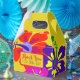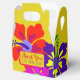 Ballotins d'anniversaire et d'événements tropicaux avec le texte "merci d'être ici". Grand et audacieux, design floral en rouge, violet et rose, sur une couleur arrière - plan jaune doré. Customisez le texte en deux lignes à l'avant des cases avec poignées. Cette conception sera transférée à certaines des autres formes de boîte. Les choses s'impriment comme vous le voyez, alors ne choisissez pas une zone qui coupe votre texte. Parfait pour les fêtes d'anniversaire d'été et les douches à thème tropicales et les fêtes d'avant-mariage.