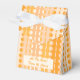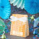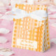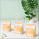 Cercles et points sur des rayures de différentes nuances d'orange, du carotte foncé au pêche pastel. D'autres types de boîtes cadeaux avec ce design sont également disponibles dans d'autres couleurs.