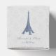 Personnalisez une boîte unique pour les invités avec ce Ballotin Mariage damassé Tour Eiffel bleu unique. Le design ballotin présente la Tour Eiffel contre un délicat arrière - plan en dentelle damassée. Personnalisez avec les noms du marié et de la mariée avec la date du mariage. Papier à lettres mariage supplémentaire disponible avec cette conception aussi.