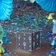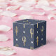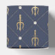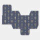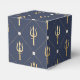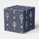 Boîtes de faveur avec un trident vintage doré orné d'un motif de treillis perlé bleu et or.