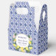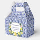 Cette boîte à cadeaux de douche de mariée enchantante, belle et fraîche au citron présente des citrons aquarelles vibrants avec des roses roses délicates, complétées par un motif de tuiles italiennes bleues méditerranéennes complexes avec une typographie de lettrage bleu. Ces boîtes à cadeaux promettent d'apporter l'attrait du charme méditerranéen à votre fête de douche de mariée. Texte facilement personnalisable et modifiable.