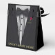 Une boîte cadeau en tuxedo noir glitery avec une rose rouge fait un design très élégant pour une boîte de faveur de mariage, pour anniversaires, bachelor et bachelorette fêtes et autres événements spéciaux.