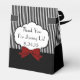Élégante et formelle, cette petite boîte cadeau de smoking est personnalisée pour répondre à vos besoins. Dites merci de façon spéciale avec un tux à lapel blanc, une cravate à arc marron et une boutonnière rosebud. Bouton gris descendu chemise de robe. Arrière - plan rayé noir et blanc avec ruban assorti. Parfait pour les dîners de cravates noires et les collecteurs de fonds en mariage ou en version officielle. Pour voir d'autres "tuxedo ballotins" et les produits correspondants-S'il vous plaît visitez mon magasin "La princesse hongroise" à www.zazzle.com/hungaricanprincess*. Regardez dans ma catégorie de département "Black Cravate Tuxedo Collection".