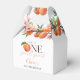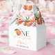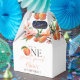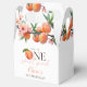 Ces charmantes boîtes de faveurs pour la première fête d'anniversaire présentent une aquarelle de pêches et de fleurs, ainsi qu'une typographie élégante. Conçues par Thisisnotme©