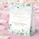Un Merci Sucré Eucalyptus Monogram Gold Wedding Favor Box. Caractéristiques feuilles d'eucalyptus aquarelle, parties scintillant d'or Un texte de Merci doux et monogramme minimaliste avec initiales à l'arrière.