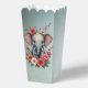 Une touche d'été : Le bébé éléphant dans une mer de fleurs . Ce design enchanteur présente une illustration aimante d'un petit éléphant, peint dans des tons gris délicats. Ses oreilles intérieures roses apportent une touche ludique et charmante. Ses grands yeux expressifs rayonnent de curiosité et de convivialité, tandis que son expression faciale douce transmet une chaleur pure. L'éléphant est posé en pente douce parmi une variété de fleurs colorées, dans des tons vifs de rouge, d'orange, de rose et de blanc.