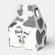 Aquarelle rose florale Vache et vache Imprimer Anniversaire Ballotin invité Célébrez le garçon ou la fille d'anniversaire avec cette fête personnalisée moderne et chic Boîte Favor avec une adorable vache aquarelle peinte à la main entourée de Belles fleurs d'aquarelle rose et violet. Merci à vos invités de célébrer votre journée spéciale avec ces adorables ballotins d'impression de vaches. Remplir avec un délice délicieux, des bulles, brillant pour les lèvres, colliers et bracelets artisanaux. Les clients adoreront cet adorable Ballotin fourré de bonbons ! Message Me pour des commandes personnalisées ou envoyez-moi un courriel à lemontreepaperie@hotmail.com Objets correspondants disponibles en magasin! Cliquez ici—> https://www.zazzle.com/collections/cow_birthday-119918973549815539 ©The Lemon Tree Paperie.