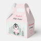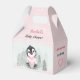 Un peu d'amour est en route ! Fille d'hiver baby shower petits ballotins avec adorable bébé pingouin fille avec un coeur rose dans la forêt gelée. Parfait pour un baby shower d'hiver et autour de la journée Valentines. Vous pouvez choisir parmi 3 tailles de ces ballotins gables. Personnalisez facilement le texte. - Kate Eden Art