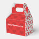 Parfait pour la Saint Valentin. Cette conception a deux panneaux sur les côtés avec un arrière - plan blanc avec un motif de coeurs rouges et surlignés. Les panneaux avant et arrière sont rouges avec un motif de coeurs rouges foncés. Sur les panneaux avant et arrière, on peut lire : "Bonne Saint Valentin". Sur la partie supérieure du panneau avant, il y a une zone pour le texte supplémentaire. Tout le texte peut être customisé.