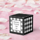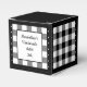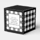 Boîte de faveur classique à carreaux buffalo noir et blanc. Le texte des deux côtés de la boîte est personnalisable. Si vous utilisez le bouton/outil 'modifier le design', vous pouvez également ajouter vos propres images/photos. D'autres coloris sont disponibles.