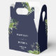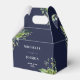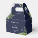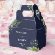 Cette élégante boîte de faveur de mariage botanique fleurie verdoyante peut être personnalisée avec vos informations en typographie chic sur un arrière - plan bleu marine. Conçu par Thisisnotme©