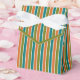 Ballotin rayé vert olive, turquoise et orange avec cravate ruban. Parfait pour tous les thèmes de décoration cadeau; simple/minimaliste à maximaliste en fonction des agréments supplémentaires.