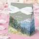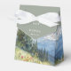 Ces boîtes de bonbons de mariage élégantes vert sauge aquarelle montagne avec fleurs sauvages peuvent être personnalisées avec vos informations en typographie moderne. Conçu par Thisisnotme©