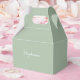 Élégant, rustique, simple, monogramme, minimaliste, nom, boîte de faveur vert sauge. Beau, design tendance pour la douche de la mariée.
