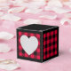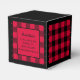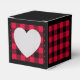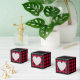 Cœur rouge et noir ou boîte de faveur à carreaux de bûcheron. Le texte au dos de la boîte est personnalisable. Si vous utilisez le bouton / outil 'Modifier le design', vous pouvez également ajouter vos propres images / photos. D'autres coloris sont disponibles.