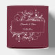 Personnalisez une boîte unique de faveur de mariage pour les invités avec cette boîte de préférence de mariage fleurie de vin. Le design ballotin est agrémenté d'une élégante floraison feutrée et d'un arrière - plan de couleur assortie. Personnalisez avec les noms du marié et de la mariée avec la date du mariage. Papier à lettres mariage supplémentaire disponible avec cette conception aussi.