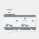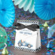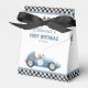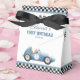 These fun birthday party favor boxes feature a vintage blue race car and chequered flags. Personalized with your birthday party details and thank yo message on the reverse. Designed by Thisisnotme©