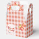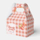 Plongez dans une célébration intemporelle avec notre charmante boîte cadeau "Merci" à toit ouvrant en motif Vichy pêche vintage ! Parfaitement adaptée pour allier l'attrait rustique classique à une touche de nostalgie estivale sucrée, cette boîte à cadeaux personnalisable est idéale pour toute fête sur le thème de la pêche, une baby shower country chic ou une célébration d'anniversaire charmante. Les délicates pêches aquarelles, sur fond de motif vichy rose pêche chaud, créent une esthétique invitante que les invités de tous âges adoreront.