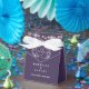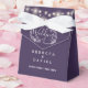 Un élégant ballotin de mariage avec de jolies lampes à cordes et un feuillage floral dessiné à la main sur un arrière - plan violet. Une façon parfaite de remercier vos invités ! Conçu par Thisisnotme©