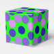 Voir des points violet Ballotin Carré-vert-est un design d'art graphique numérique. De grands points surdimensionnés dans plusieurs nuances de couleur créent un motif arrière - plan de points. Les couleurs à points sont violettes, rose clair et bleu et s'assoient sur un arrière - plan vert néon. N'hésitez pas à personnaliser avec du texte. Ce design est disponible en couleurs assorties.