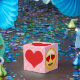 Boîte-cadeau d'amour d'Emoji. Vous pouvez customiser avec votre propre couleur (montrée dans le rose). Ajoutez votre propre texte ou d'autres graphiques.