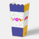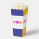 Style : Les Ballotins de Popcorn Ballotin de 3,75 po x 3,5 po x 7,5 po sont aussi uniques que vos invités. Parfait pour les mariages, anniversaires, conférences et autres événements. Choisissez un design qui correspond au thème de votre soirée ! Dimensions : 2,5 po x 3,5 po x 7,5 po Impression couleur complète sur carte stock de haute qualité Expédié plat, un assemblage simple a requis Contact alimentaire sans danger. L'utilisation d'une doublure/barrière est recommandée si vous souhaitez éviter la coloration