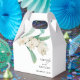A beautiful watercolor wedding design featuring white Orchid botanicals. An arrangement of watercolor Orchids with greenery. A modern minimalist design for anyone who loves white watercolor Orchids and leaves and botanical themed wedding stationery. An elegant white Orchids and greenery wedding favor box design with modern elements. Matching wedding invitations and other stationery items are also available.