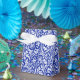 Ballotins William Morris Thistle Damask White sur Cobalt Blu