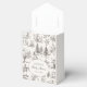 At the heart of the favor box design lies an elegant oval frame, providing a graceful border for your baby shower details. This design element adds a touch of refinement, ensuring your announcement stands out with style and clarity. The favor box is completed with vintage-inspired calligraphy, lending an air of timeless elegance to your message. This sophisticated script beautifully complements the whimsical illustrations, inviting guests to join in the celebration with warmth and charm.