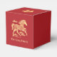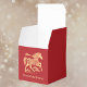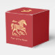 This elegant red party favor box celebates the Chinese Lunar New Year of 2026, which is the zodiac Year of the Horse. Commemorate the prosperity and good fortune of the year with this gold look scrollwork horse and clouds on a deep red background. Both sides feature a golden horse, with the front saying "Year of the Horse" but you can change it. The back contains the name of the person or company giving the favor, but you can update it to match the front or provide another message. Make sure to type what you want and replace the placeholder in the Personalize box. The top has a plum blossom flower. This favor box would be great for giving favors for a Lunar New Year's party or community event.