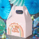 Boite de fête inspirée par Retro Young Wild et Three 3ème anniversaire avec arc-en-ciel hippie, marguerites et polices et couleurs boho.