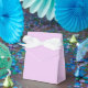 La boîte de faveur de la fête est affichée dans une couleur solide d'Iris avec un ruban blanc arc. Customisez cet objet et ajoutez votre propre texte ou achetez tel quel.
