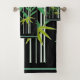 Bambou sur serviette de bain noire, avec rideaux de douche assortis disponibles.