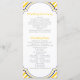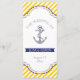 Jaune, rayures blanches et gris, marine bleu ancre nautique cérémonie mariage et programme de fête. Un design motif rayé élégant avec bandes diagonales jaunes et blanches, une ancre grise avec un coeur et une corde bleu marine et votre texte dans un cadre avec une bannière bleu marine. Contemporain mais avec un look vintage dans un sens. Vous pouvez modifier la couleur arrière - plan et la couleur du texte en choisissant parmi plus de 200 couleurs à partir du graphique en couleurs Zazzle. Ce design élégant est un modèle entièrement personnalisable et fait partie d'un ensemble mariage parfait pour un mariage d'été.