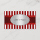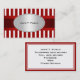 Red White Stripe, Red Ribbon, Gold Framed Étiquette Carte de visite Le design est prêt à être personnalisé avec votre nom sur l'avant, et d'autres informations sur le rouge encadré inverse. Vous avez le choix entre un étiquette de perle encadré d'argent ou d'or. Veuillez noter qu'il s'agit d'une conception graphique et qu'elle ne contient pas de ruban ou d'or, de pierres précieuses ou de gaufrage