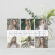 La carte de faire-part moderne de graduation comporte six de vos photos préférées alignées côte à côte en deux rangées, avec "diplômé" affiché au centre en lettrage gris-bleu élégant. Personnalisez avec votre nom, l'école et l'année de diplôme sur une simple couverture blanche rayée. Les cartes retournent à un motif ikat subtil en gris et blanc. Un choix élégant et moderne pour les diplômés 2017.