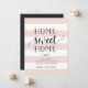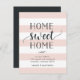 Annonces modernes et charmantes, faites connaître à vos amis et à votre famille votre nouvelle maison douce! Design présente un arrière - plan rayé subtil en rose et blanc pastel, avec "home sweet home" en écriture noire et en typographie de bloc. Utilisez les champs modèle pour ajouter votre entrée personnalisée, votre nouvelle adresse et vos noms.