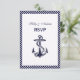 Elégante Ancre nautique Marine Blue Diagonal Striped RSVP Card Propre, élégant, chic et élégant accessoires de fête personnalisable avec un arrière - plan à rayures bleu marine classique et un ancre bleu marine centré. Ce produit fait partie d'une suite de conceptions assorties qui sont facilement personnalisables pour de nombreuses occasions et événements. Si vous avez besoin de cartes RSVP assorties, notes de remerciements, timbres, magnets, étiquettes de bouteilles, menus, cartes d'escorte, programmes d'événements, étiquettes de faveur ou autres accessoires, veuillez consulter nos autres annonces. Si vous ne voyez pas de produit correspondant qui vous intéresse, ou si vous souhaitez voir ce design dans des couleurs différentes, veuillez nous contacter et nous serons heureux de vous accueillir. Veuillez noter qu'il s'agit d'une conception graphique / photo qui est transférée au produit sous-jacent, et ne contient aucun tissu réel, ruban, métaux, gravure, pierres précieuses ou gaufrage. 2013 ©HisMyPartyDesigns Tous droits réservés