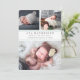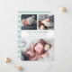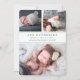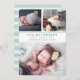 Annoncez l'arrivée de votre bébé sucré avec notre photo collage annonces de naissance avec des lettres grises élégantes et des détails vert menthe pastel. Les cartes plates comportent trois de vos photos préférées de nouveau-nés — deux en haut, et une en bas — avec le nom du bébé, les statistiques de naissance et les noms de famille en gris chic, encadrés par deux minces bandes de vert menthe. Cartes inversées à la menthe et rayures blanches.