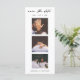 Un mariage moderne minimaliste style strip de photobooth enregistrer la date faire-part. avec de l'espace pour 3 de vos photos préférées et code QR pour votre site mariage.