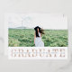 La carte de faire-part moderne de graduation comporte une seule photo de graduation horizontale ou orientée paysage, avec "diplômé" en bas en papier doré rose. Personnalisez avec votre nom, l'école et l'année de diplôme à travers le centre. Ajoutez des détails supplémentaires sur votre diplômé à l'envers.